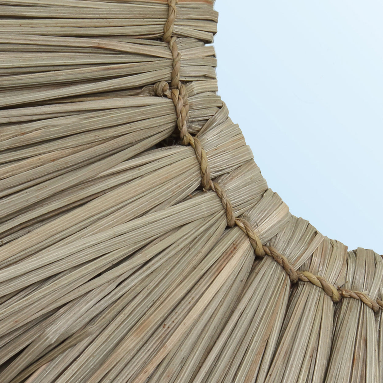 Deze prachtige spiegel brengt een vleugje kusttextuur in uw huis. Gemaakt van prachtig gras rondom een spiegelcentrum. Meer dan ooit trendy, brengt het een prachtige aardse boho touch aan uw interieur. Een geweldige look voor elke kamer.