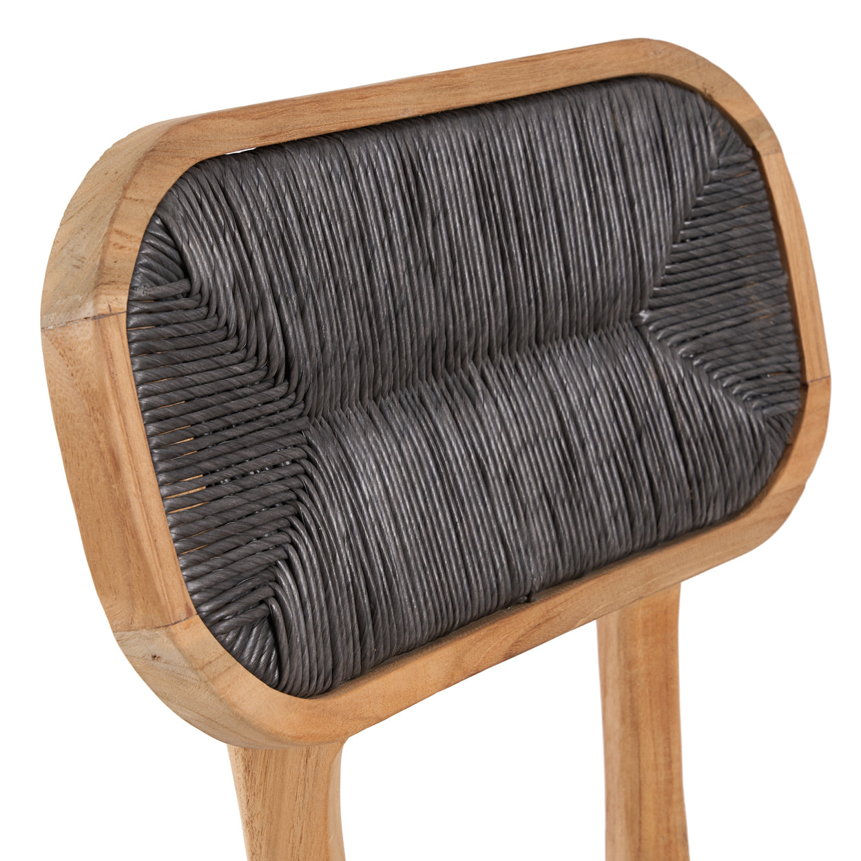 "Arigato" betekent "dank je wel" in het Japans, en je gasten zullen je zeker bedanken voor het mogen zitten op dit prachtige ontwerp terwijl ze je zelfgekookte maaltijd eten. Met het oog op het milieu hebben we teakhout uit verschillende bronnen geüpcycled om deze eetkamerstoel te maken die zowel binnen als buiten gebruikt kan worden. Het strakke ontwerp is afgewerkt met een dramatische zwarte touwrug die contrasteert met de natuurlijke tinten van het hout.