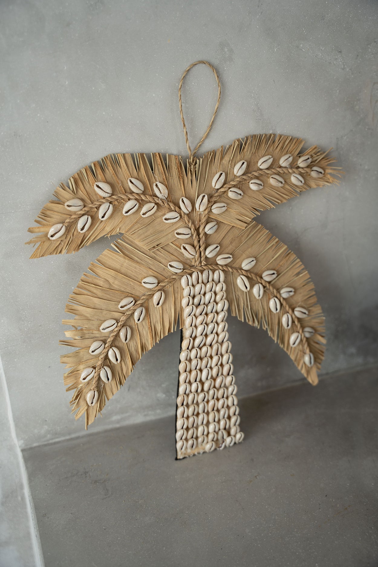 Breng de tropen naar je huis met dit leuke hangende deco stuk in de vorm van een palmboom! Het is volledig gemaakt van schelpen, bananenblad en touw en zal een unieke toevoeging zijn aan je woonkamer, badkamer of zelfs buitenruimte. Elk stuk is met de hand gemaakt door de lokale bevolking van Bali.