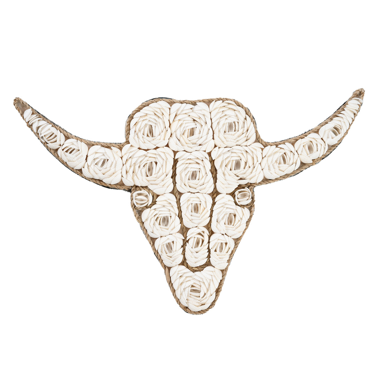 Deze decoratieve stier is helemaal gemaakt van mooie witte schelpen, aan elkaar geplakt in de mooie vormen van bloemen. Dit is een leuk en mooi gemaakt accessoire dat u op elke gewenste plaats kunt ophangen. Het zal zeker het onderwerp van gesprek zijn!