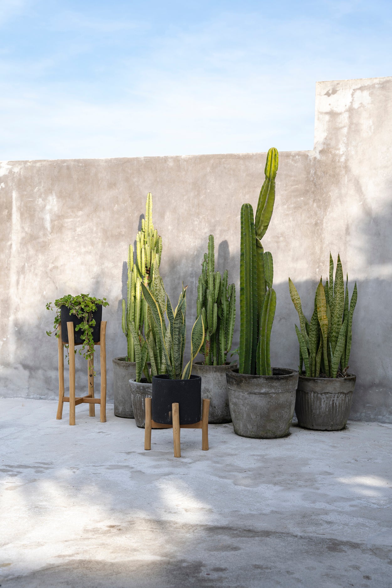 Voor alle trotse plantenouders presenteren we een prachtige aanvulling op je interieur, gemaakt in Bali. Deze elegante creatie heeft teakhouten takken die op elegante wijze een terracotta plantenbak ondersteunen. De zwarte kleur en fascinerende textuur van de plantenbak maken er een waar kunstwerk van.