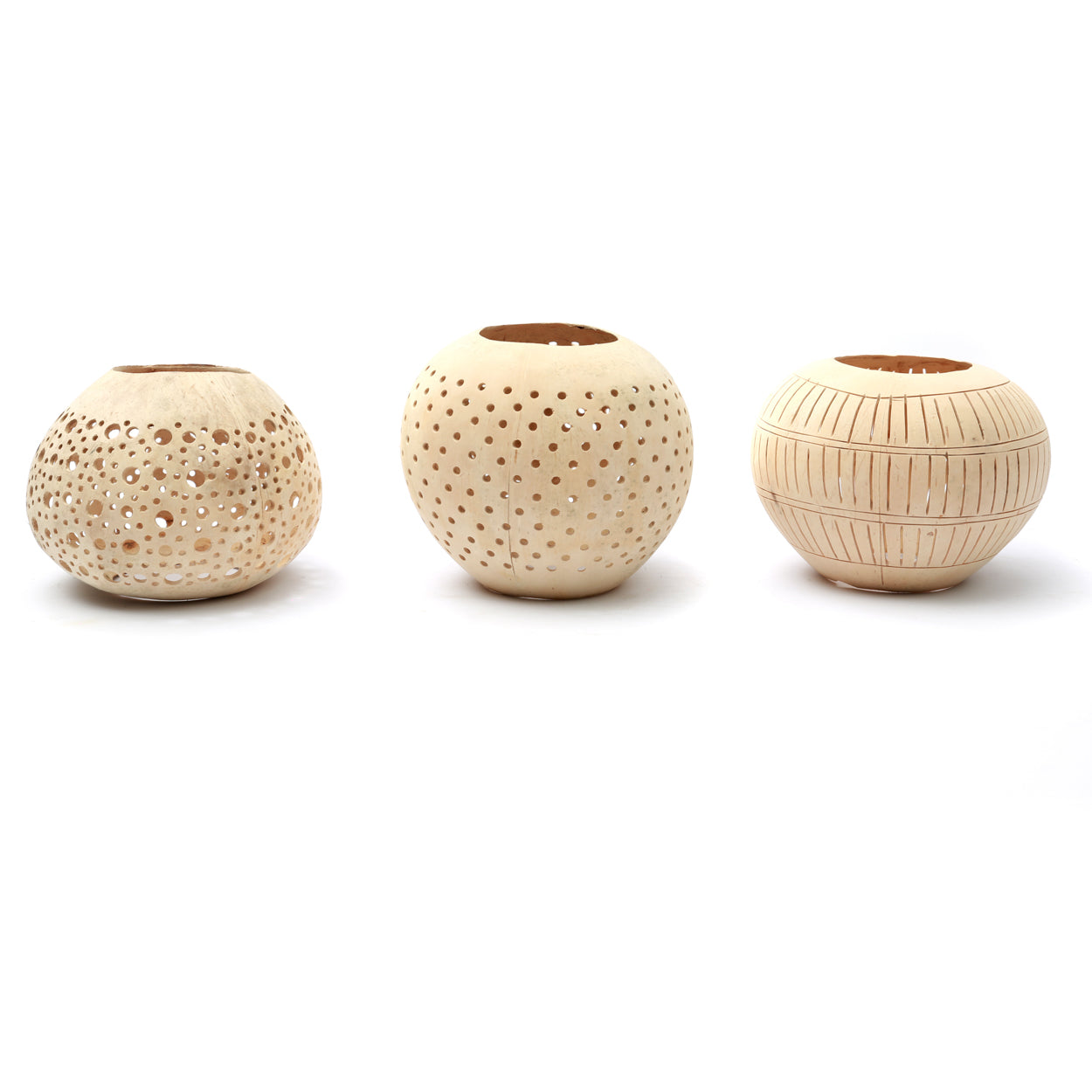 Elk jaar worden miljoenen kokosnootdoppen weggegooid als afval. Wij geven ze een nieuw leven als een prachtige kandelaar waar u elke dag van kunt genieten. Elke kokosnoot kandelaar is met de hand gemaakt en prachtig ontworpen door ons team van bekwame ambachtslieden in Bali. Versier je huis en inspireer jezelf en anderen om het nieuwe te verwelkomen. Dit zijn echte kokosnoten - vorm en grootte kunnen variëren. Lichte zwarte markeringen op dit materiaal zijn onvermijdelijk en worden beschouwd als onderdeel van het product.