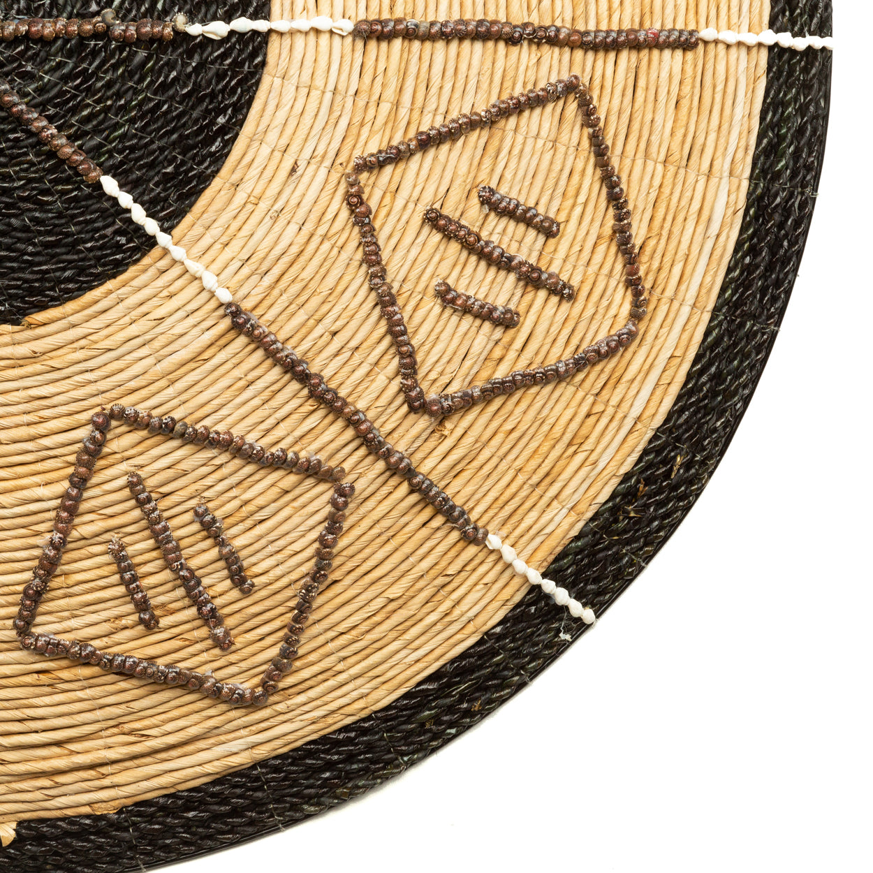 Kijk eens naar deze unieke handgeweven plaat met zijn mooie zwarte grafische details. Een prachtige etnische muurschildering die een saaie muur in je interieur zal opleuken. We houden van de natuurlijke uitstraling van dit uitzonderlijke wandstuk!
