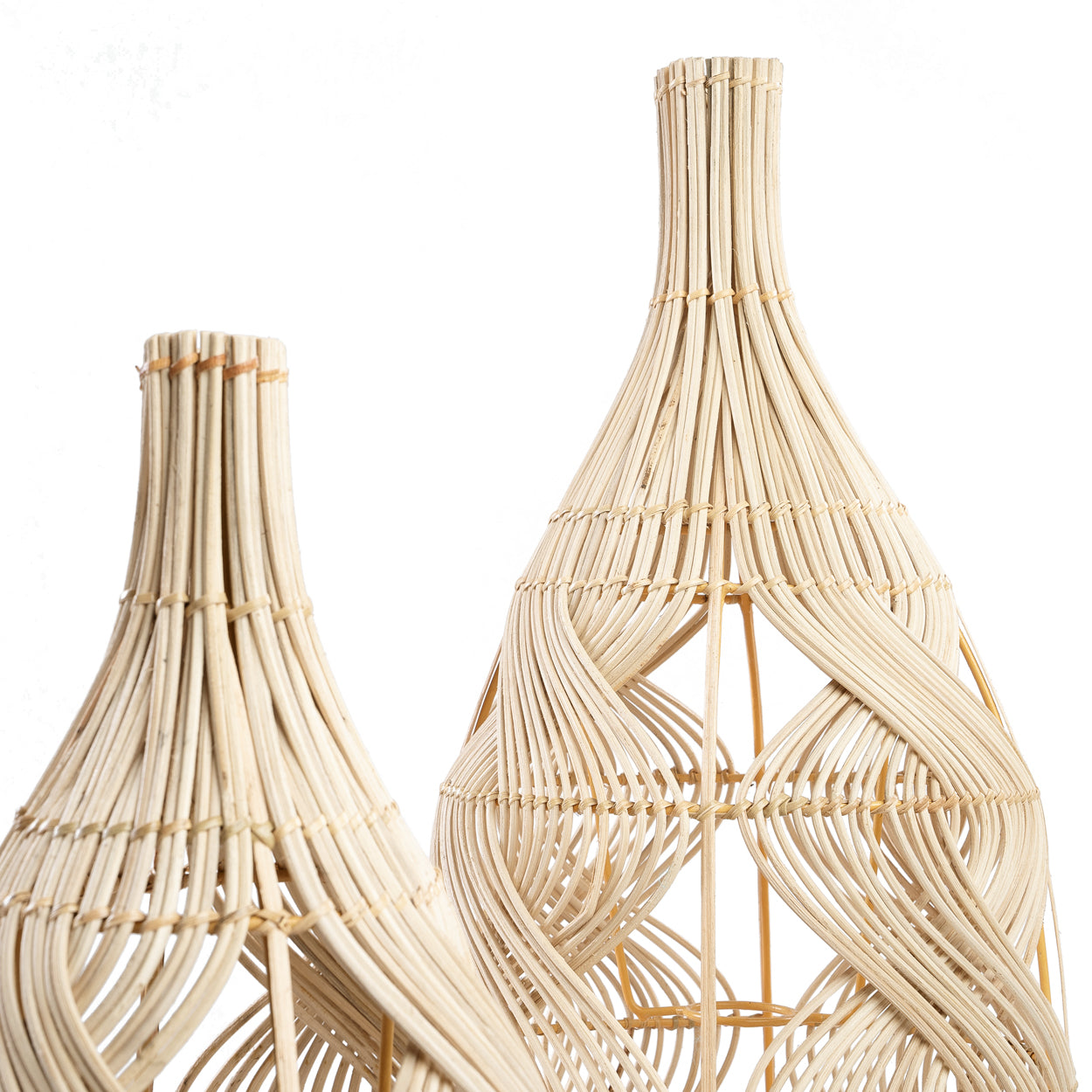 Wij houden van veelzijdige producten! Deze prachtige lamp kan zowel een hanglamp, een vloerlamp of zelfs een tafellamp zijn (zou geweldig staan op je nachtkastje bijvoorbeeld). Hij is gemaakt van rotan, met een prachtig patroon dat naar boven taps toeloopt, in de vorm van een fles. Verkrijgbaar in twee maten.