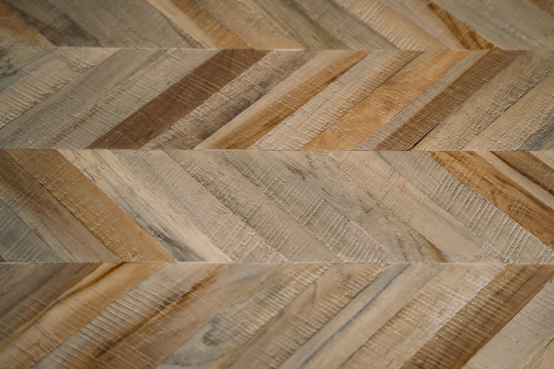Deze hoogwaardige console is gemaakt van teakhout (in een zeer elegant visgraatpatroon) en zwart ijzer. De tafel is inklapbaar en heeft de ideale hoogte om te dienen als uw familie-eettafel, zowel binnen als overdekt buiten.