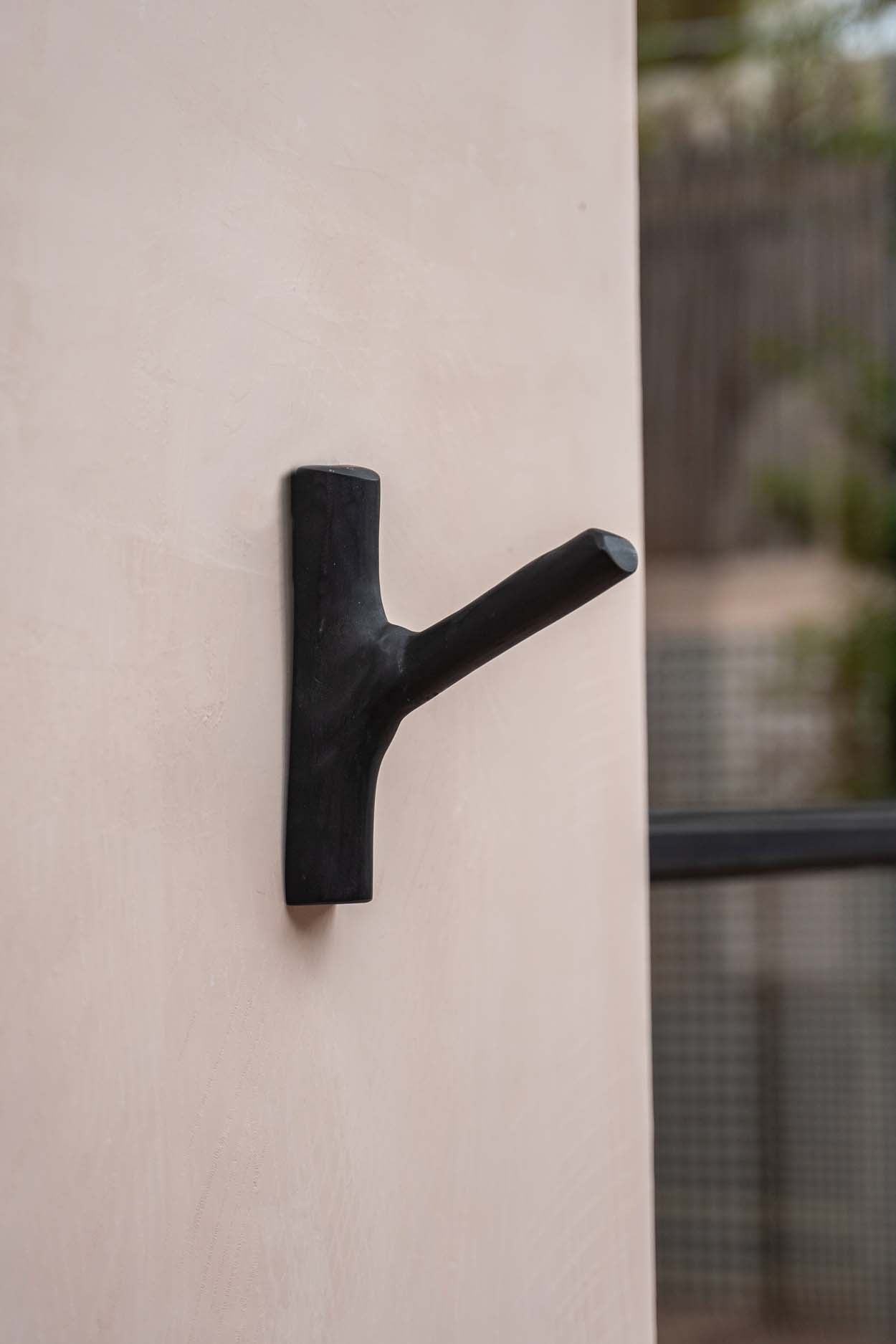 Deze massieve teakhouten haak, beschikbaar in naturel en zwart, geeft meteen een kust-sfeer aan je slaapkamer, inkomhal of badkamer. Bevestig hem aan eender welke muur en hang iets praktisch op, zoals je badjas, of iets decoratiefs zoals één van onze hangers met schelpen. Of waarom plaats je niet meerdere haken op je muur op verschillende hoogten of in een patroon? Denk creatief!