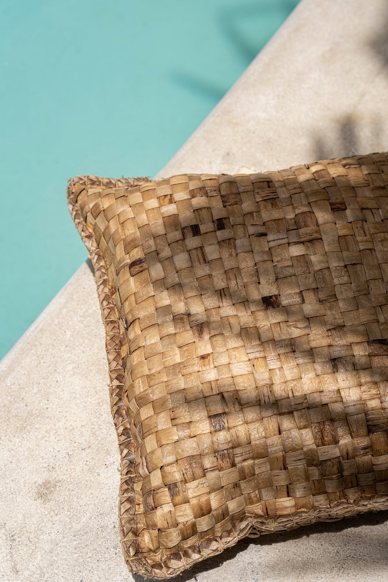 Ons handgeweven water hyacint kussen voegt een mooi structuurelement toe aan uw zachte inrichting. Een onmisbaar stuk om een boho vibe toe te voegen aan uw woonkamer, slaapkamer, badkamer, of zelfs in de tuin of het overdekte terras. Eindeloze mogelijkheden om uw eigen gezellige stijl te creëren.