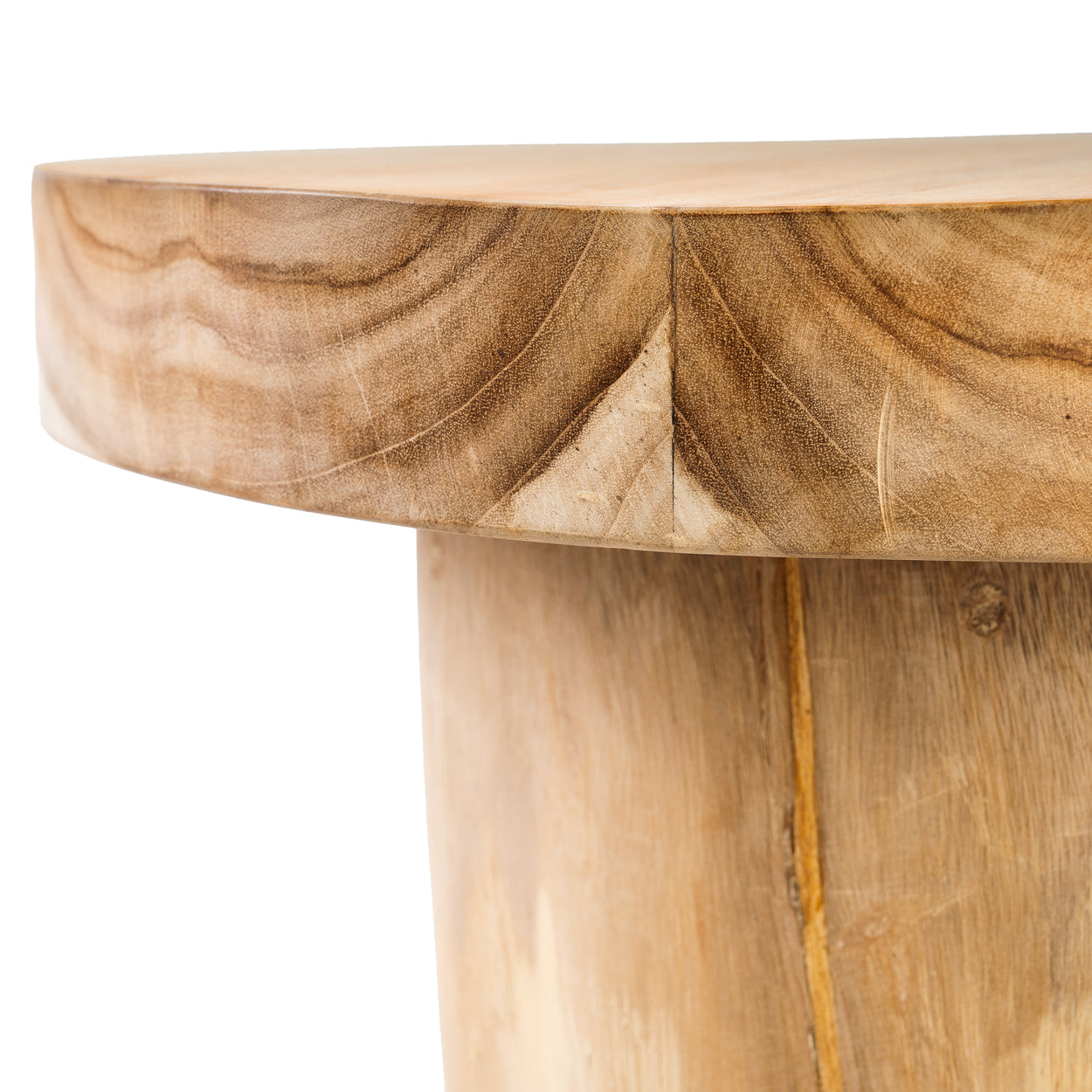 Sunny side up! De Inti (zon) bijzettafel ziet er zo organisch uit dat mensen zullen vragen of je hem zelf hebt gemaakt uit één stuk hout. Volledig gemaakt van duurzaam teakhout, is dit tijdloze meubelstuk gemaakt om altijd bij je te blijven. En dat zal hij ook.