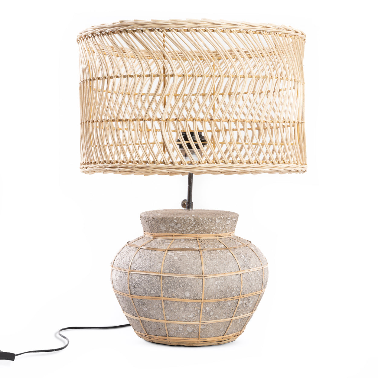 Alles is mooier met wat rondingen, zo ook deze terracotta en rotan tafellamp. De Kythira heeft een prachtige ambachtelijke uitstraling, waarbij de grijze lampvoet (met rotan grid) en het natuurlijke rotan op de lampvorm heel mooi bij elkaar passen. Dit zou geweldig staan op je nachtkastje of console!