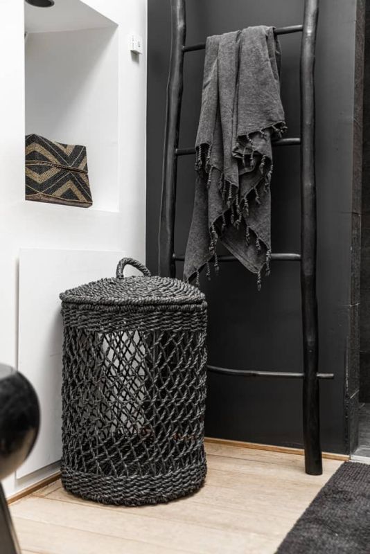 De prachtig open geweven wasmand met deksel is gemaakt van zeegras. Superhandig om je was in op te bergen, te gebruiken voor het opbergen van handdoeken in de badkamer of het opbergen van speelgoed in een woonruimte of kinderkamer.