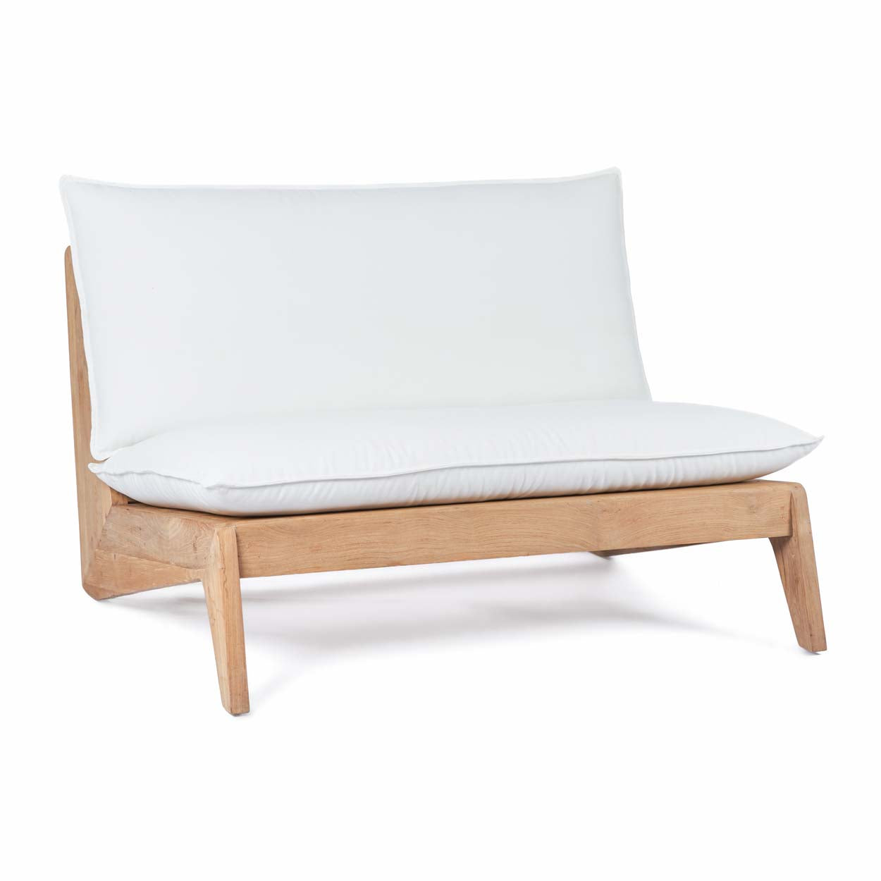 Kom tot rust met onze Lazy Two Seater Sofa - een wonder van design en comfort, gemaakt van gerecycleerd teakhout. De Lazy Two Seater Sofa wordt geleverd met buitenkussens die even veerkrachtig als comfortabel zijn.