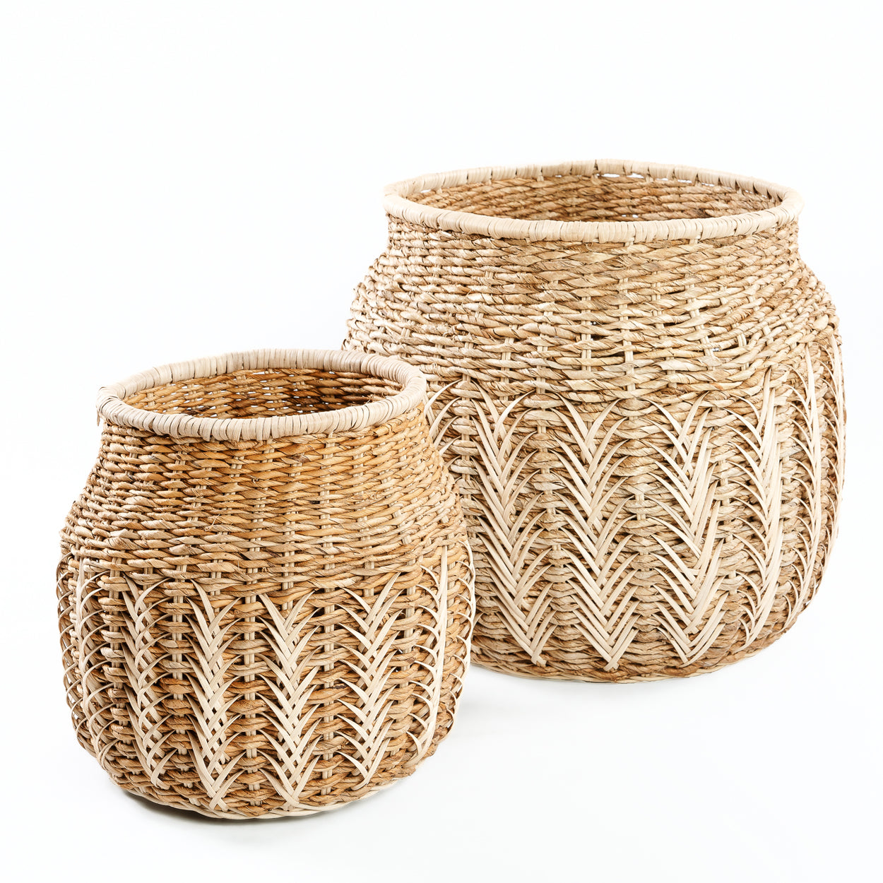 Wie wist dat opbergen er zo mooi uit kon zien? Onze Luziru manden, verkrijgbaar in twee maten, zijn perfect voor het opbergen van boeken, handdoeken, kinderspeelgoed of alles wat u dichtbij (maar uit het zicht) moet houden. Deze manden zijn met de hand gemaakt van rotan en bananenblad, wat resulteert in prachtige patronen en een zachte, natuurlijke uitstraling.