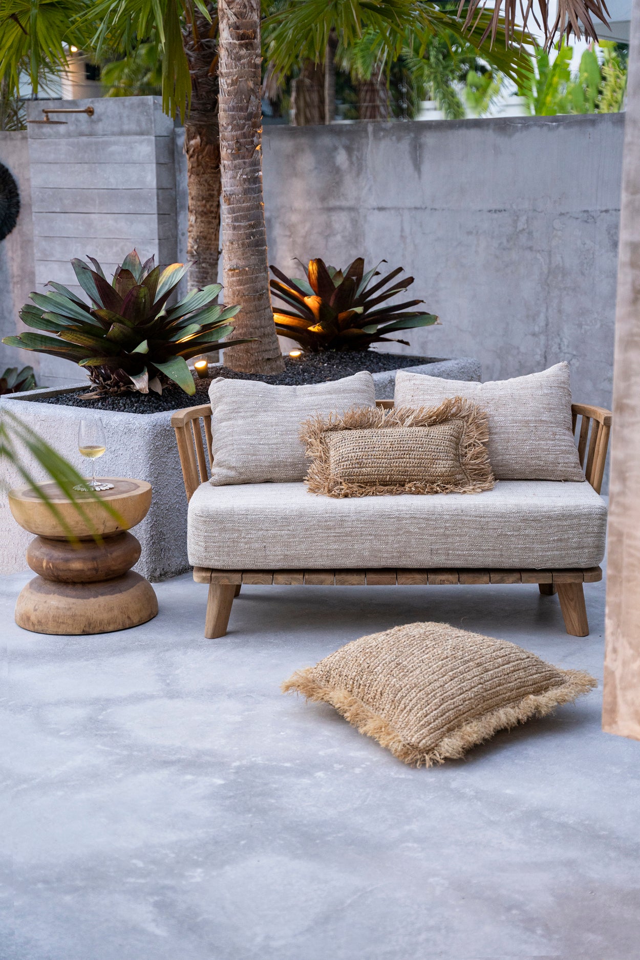 De Malawi is een prachtige aanwinst voor elke kamer of overdekte buitenruimte, met zijn diepe zittingen ideaal om te ontspannen en te lezen. Deze tijdloze bank is zorgvuldig gemaakt van gerecycled teakhout en heeft een pluche, zachte stoffen bekleding en een grote kussenzitting met twee rugleuningen. De unieke vorm voegt comfort, stijl en originaliteit toe aan elke ruimte. De Malawi is ook verkrijgbaar als eenzitter. De hier getoonde stof is geschikt voor binnenshuis. De kleuren kunnen iets afwijken van je beeldscherm.