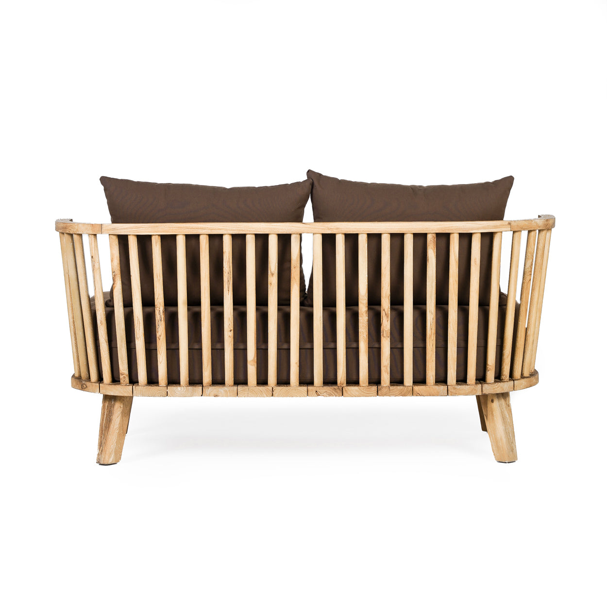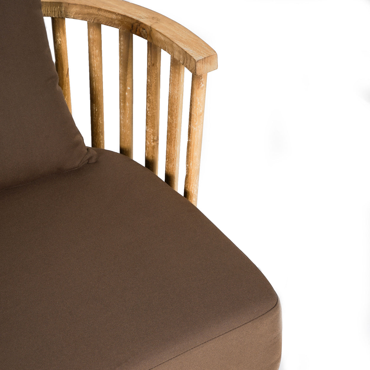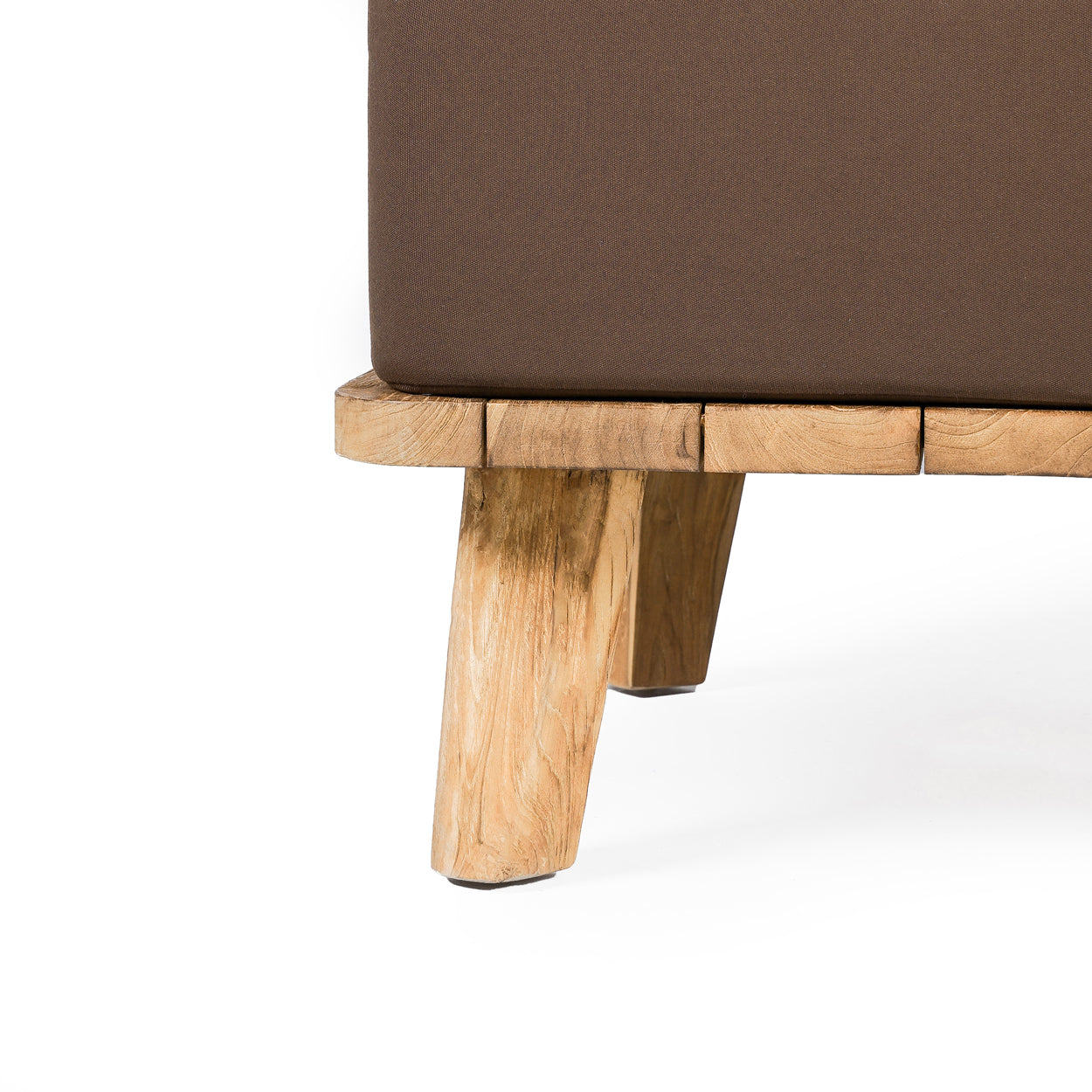 Maak kennis met onze tweezitsbank voor buiten, vakkundig gemaakt van hergebruikt teakhout met kussens voor buiten. Elk stuk heeft een unieke geschiedenis en voegt elegantie toe aan je buitenruimte. De waterafstotende kussens bieden uitzonderlijk comfort en duurzaamheid. Of je nu wilt genieten van de zon met een goed boek of gewoon een moment wilt nemen om te genieten van de schoonheid van de natuur, onze tweezitter biedt de perfecte plek om dat te doen. Ontspan en geniet van het buitenleven met deze milieuvriendelijke en stijlvolle zitoptie. De stof die je hier ziet is geschikt voor buiten. Om de kussens mooi te houden, raden we aan ze naar binnen te halen als je ze niet gebruikt. De kleuren kunnen iets afwijken van je beeldscherm.