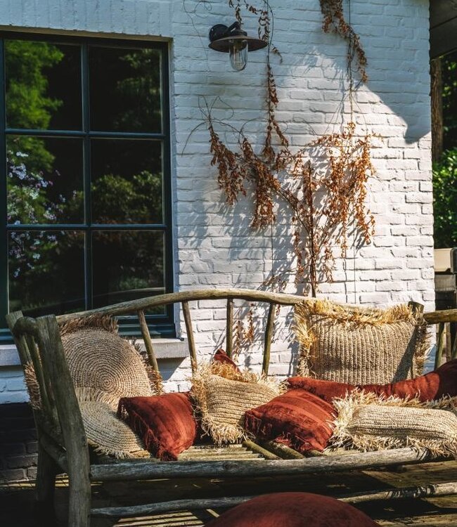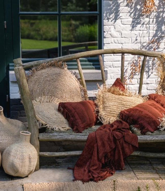 Dit katoenen kussen voegt een mooi textuurelement toe aan uw stoffering. Een onmisbaar stuk om een boho vibe toe te voegen aan uw woonkamer, slaapkamer of zelfs in de tuin of op het overdekte terras.