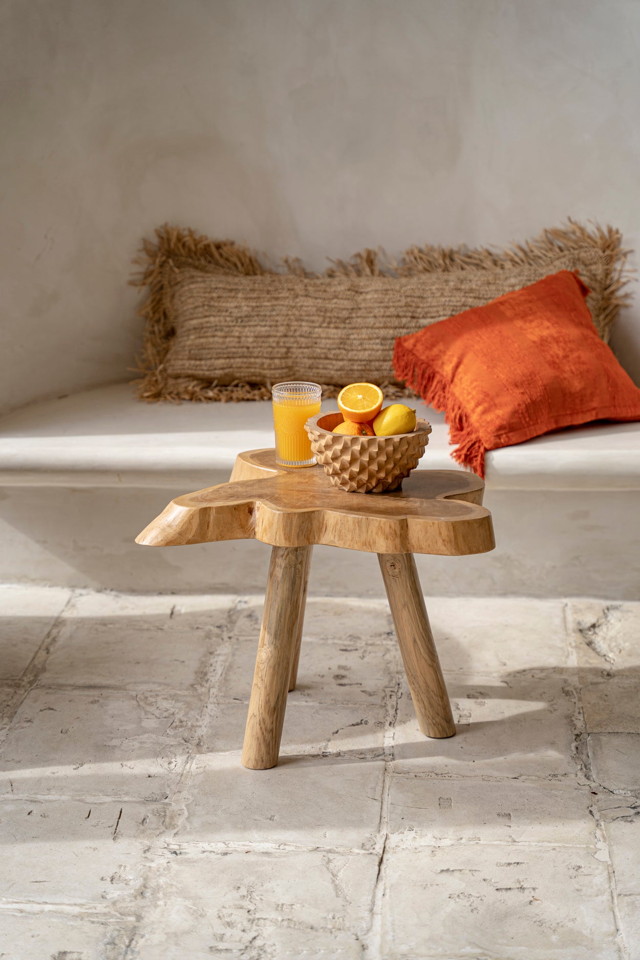 Dit mooie kleine bijzettafeltje op 3 poten heeft een mooie organische vorm waardoor het een zeer decoratief stuk is dat in elke kamer thuis past. Kan ook op een overdekt terras worden geplaatst om lekker een drankje te drinken, een boek of tijdschrift te lezen en gewoon te relaxen.