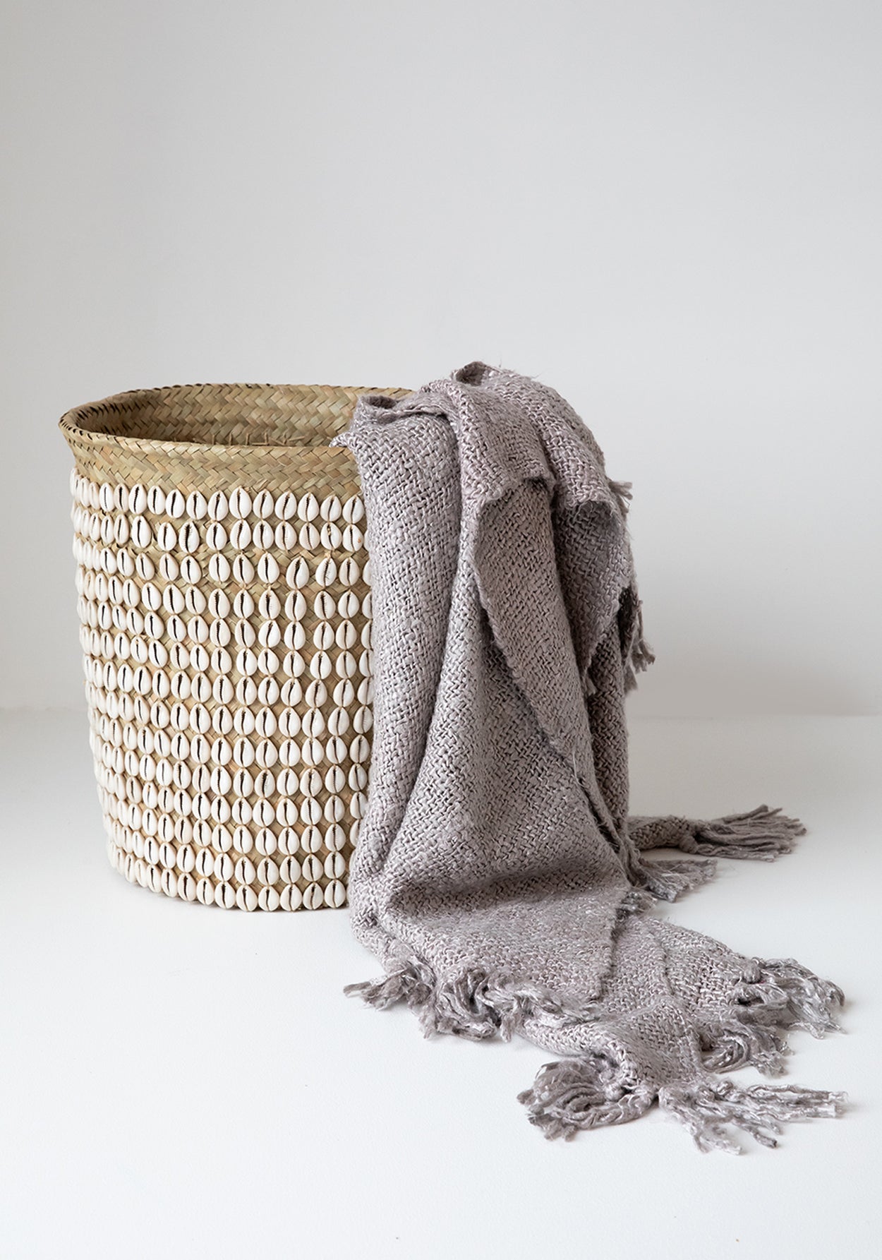 Deze mand gemaakt van de pandanplant en versierd met schelpen verzameld op de Balinese stranden is een echte beauty. Kijk eens naar de ongelofelijke details en liefde die in deze handgemaakte mand zijn gestoken - je zult hem voor altijd in je huis willen laten schitteren! Gebruik hem om wasgoed of speelgoed op te bergen of zelfs voor een grote plant.