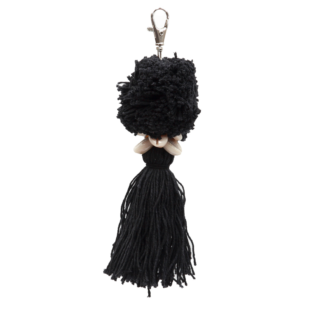 Vervaardigd uit zacht katoen, heeft de Pompom Sleutelhanger een prachtig pomponontwerp in strak zwart. Dit charmante accessoire voegt een speelse touch toe aan je essentiële items, of hij nu aan je sleutels, tas of rugzak hangt.