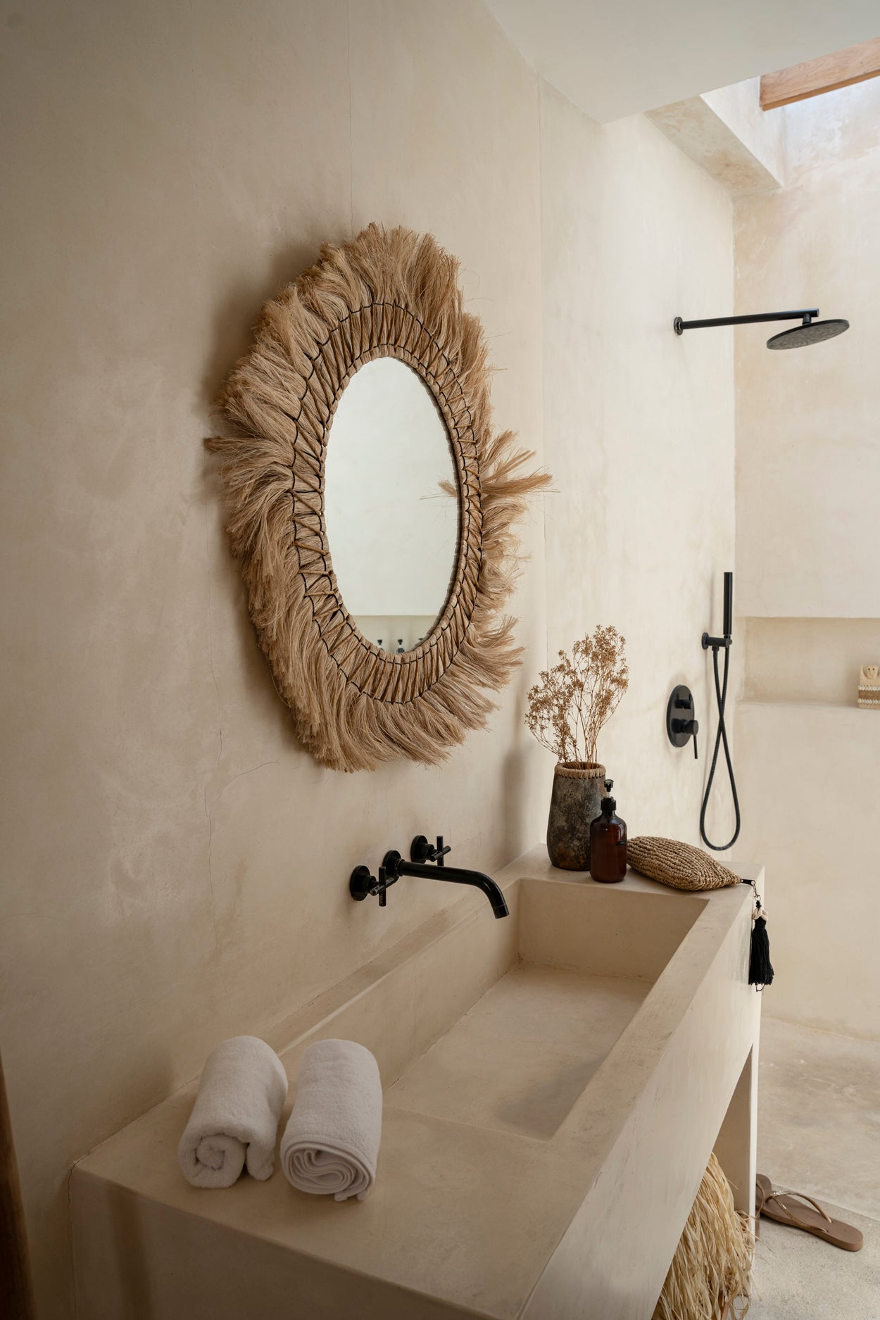 Ontdek deze natuurlijke grasspiegel. Hij brengt een natuurlijke toets in je interieur. Een geweldige aanvulling om een hal, kleedkamer of een lege muur te decoreren.