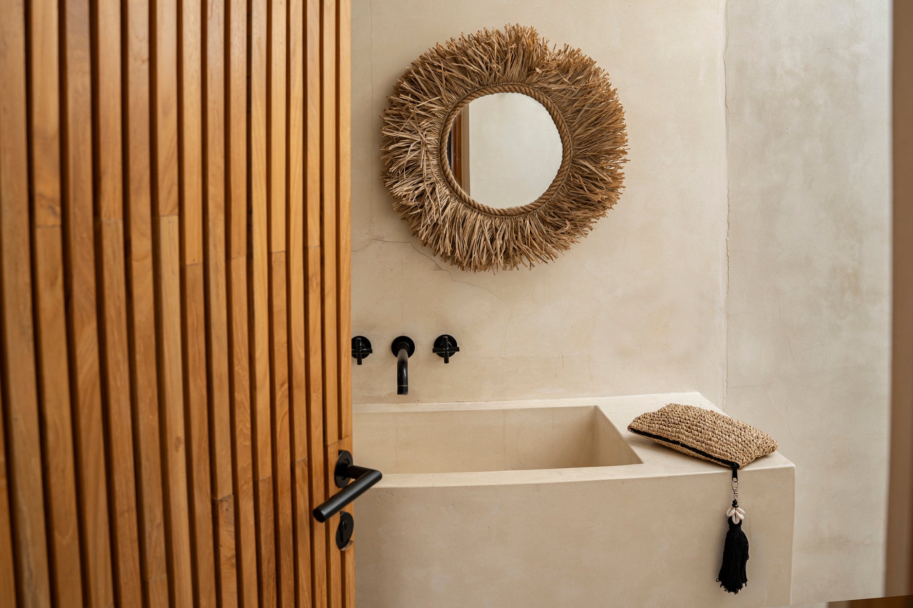 Verrijk je kustleven-stijl met onze Raffia Clutch in natuurlijk zwart. Vervaardigd uit hoogwaardig raffia met zwarte accenten, combineert deze clutch natuurlijke elegantie met de charme van de kust, en belichaamt zo de essentie van kustsophisticatie.