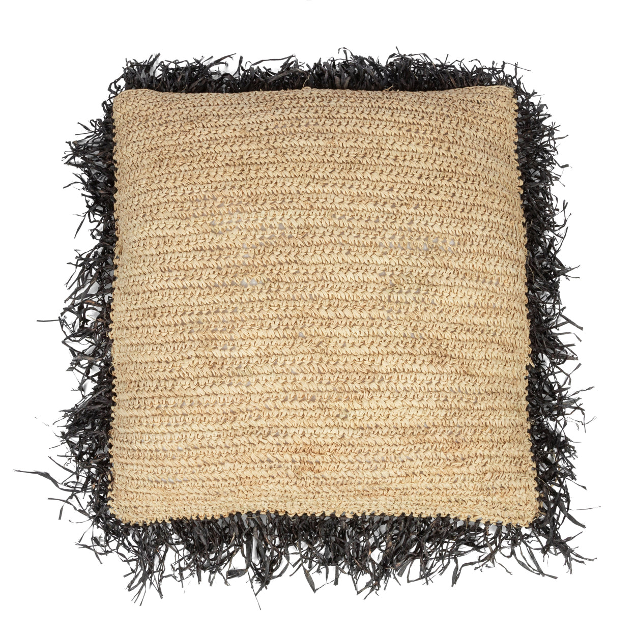 Bazar Bizar Raffia Kussenhoes - Naturel Zwart - 60x60