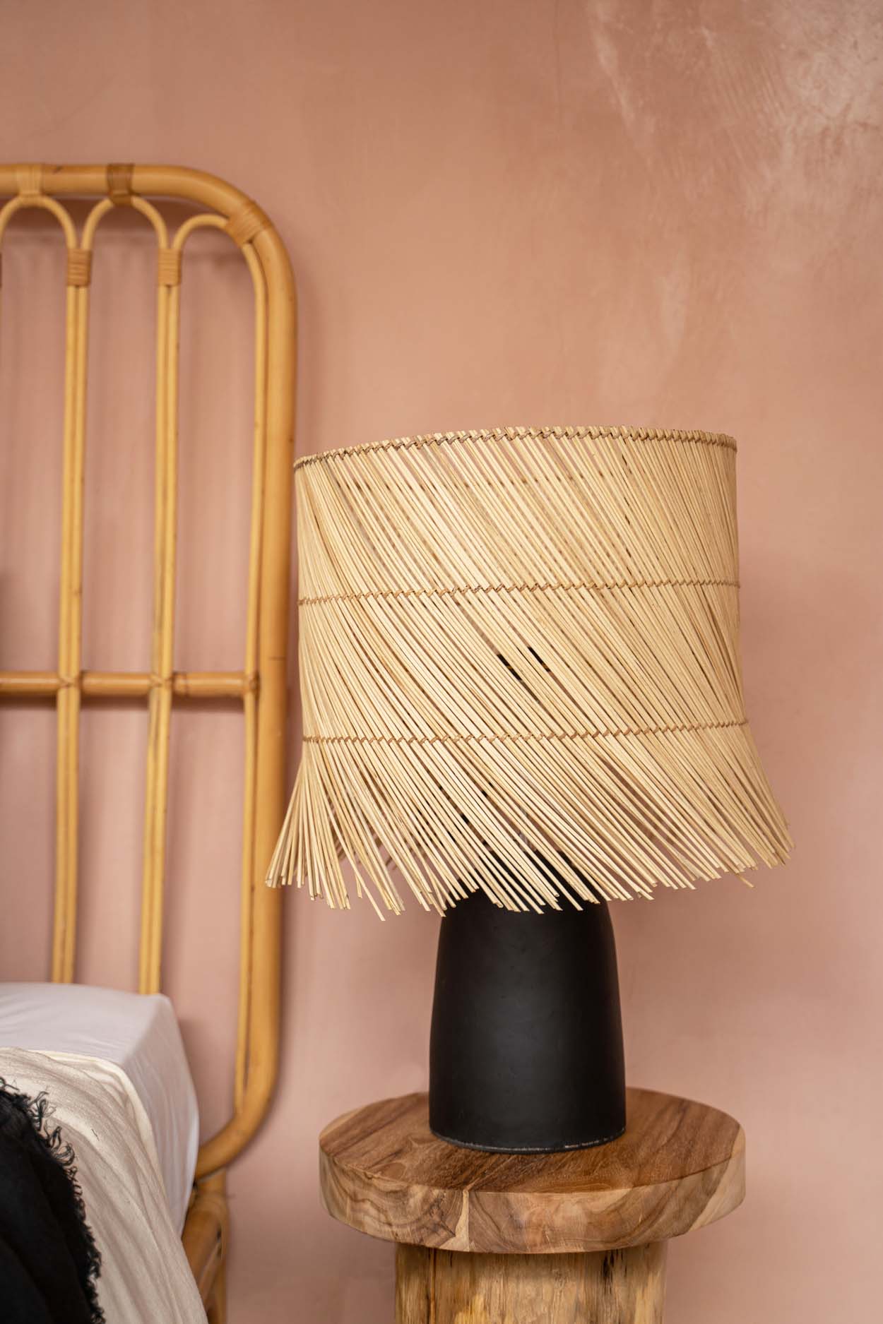 Laat u inspireren door onze prachtige stijlvolle tafellamp om een onweerstaanbare gezellige boho sfeer te creëren. De lampenkap is handgeweven met natuurgras. Plaats deze tafellamp met zijn gezellige licht verspreiding in uw woonkamer, slaapkamer of in een overdekte buitenruimte. Elektriciteitskabel inbegrepen.