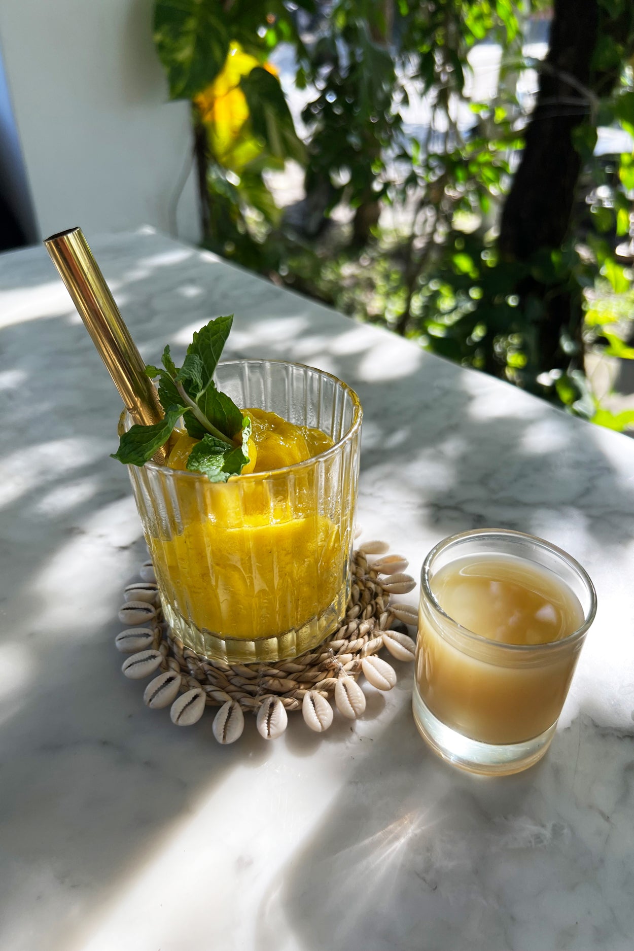 Breng de eilandstijl in uw huis met deze Seagrass onderzetters. Ze zijn omringd door kaurischelpen en passen bij elke tafelsetting.