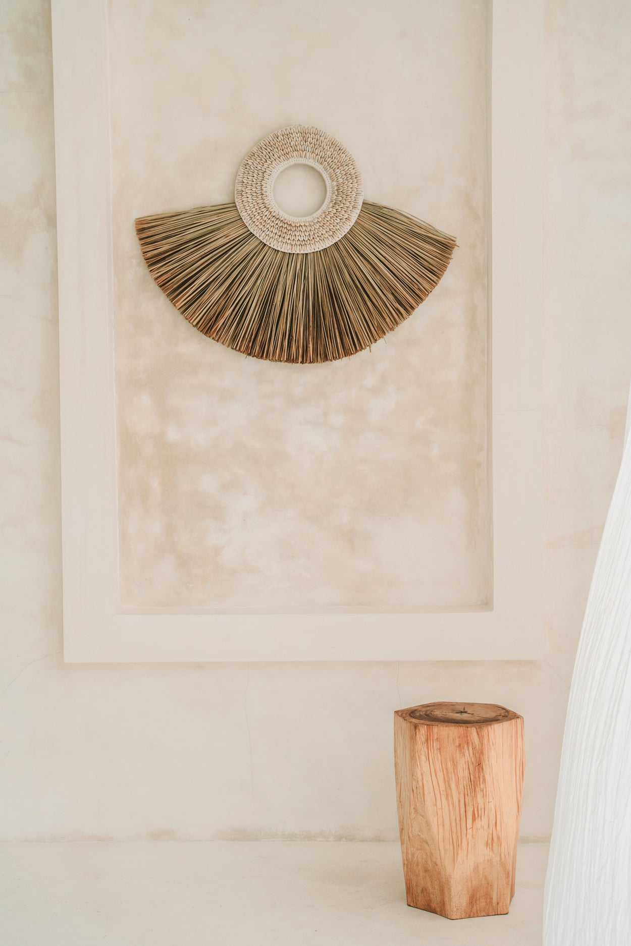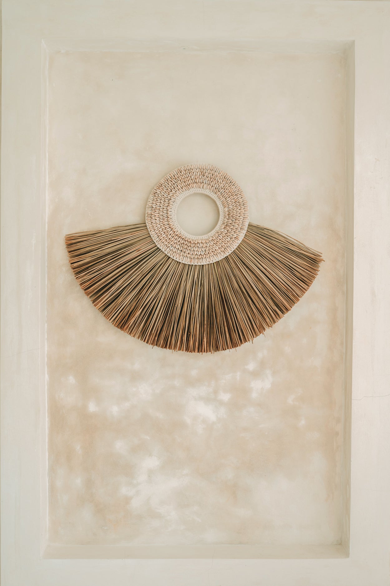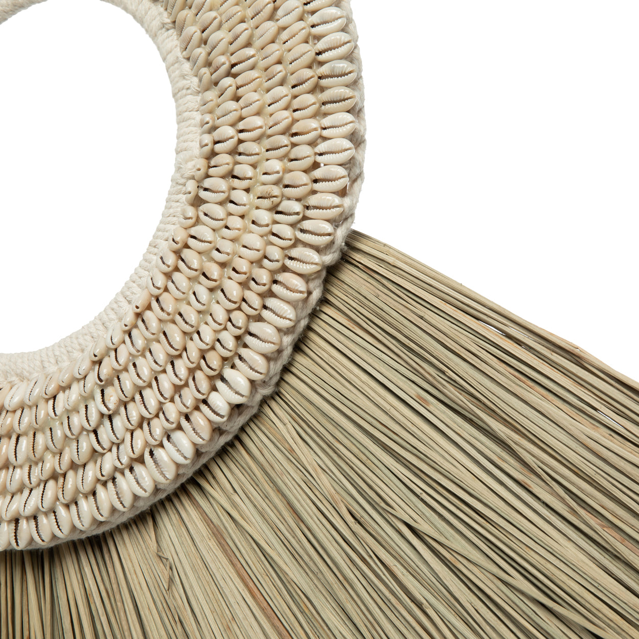 Een opvallend stuk nodig om een lege, saaie muur te versieren? Kies dan voor dit prachtige wandkunstwerk gemaakt van alang alang (zeegras) en handgeplukte schelpen.