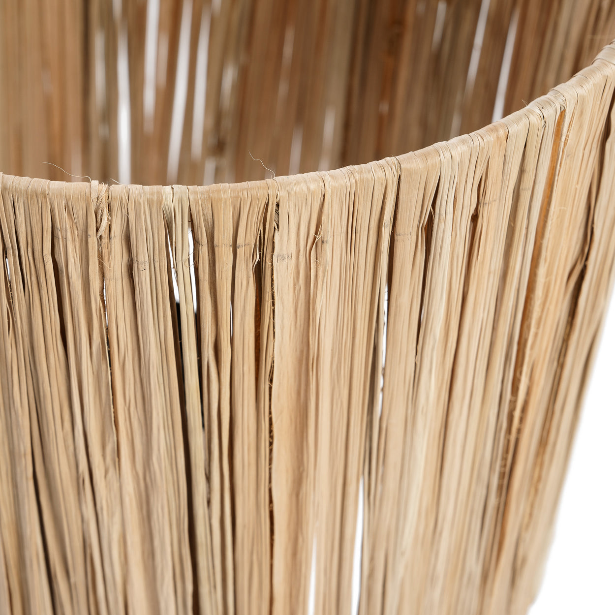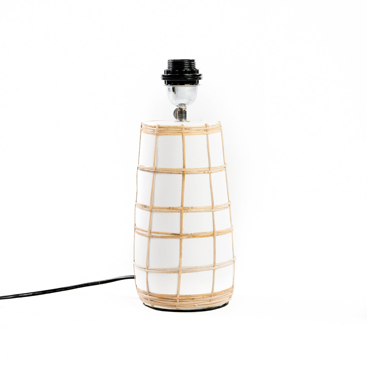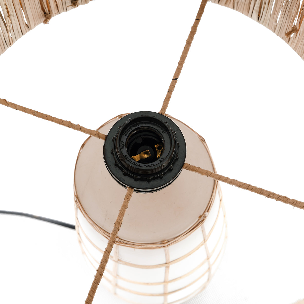 Of je hem nu op je nachtkastje(s) zet, in een vergeten / slecht verlicht hoekje van je woonkamer of in een gang - deze tafellamp zal de kamer op meerdere manieren verlichten. Pure handgemaakte pracht met een combinatie van terracotta (de lampvoet), rotan (het decoratieve rooster op de voet) en gras (de kap). Deze stijlvolle lamp heeft zeker veel persoonlijkheid! Ook verkrijgbaar met een zwarte voet.