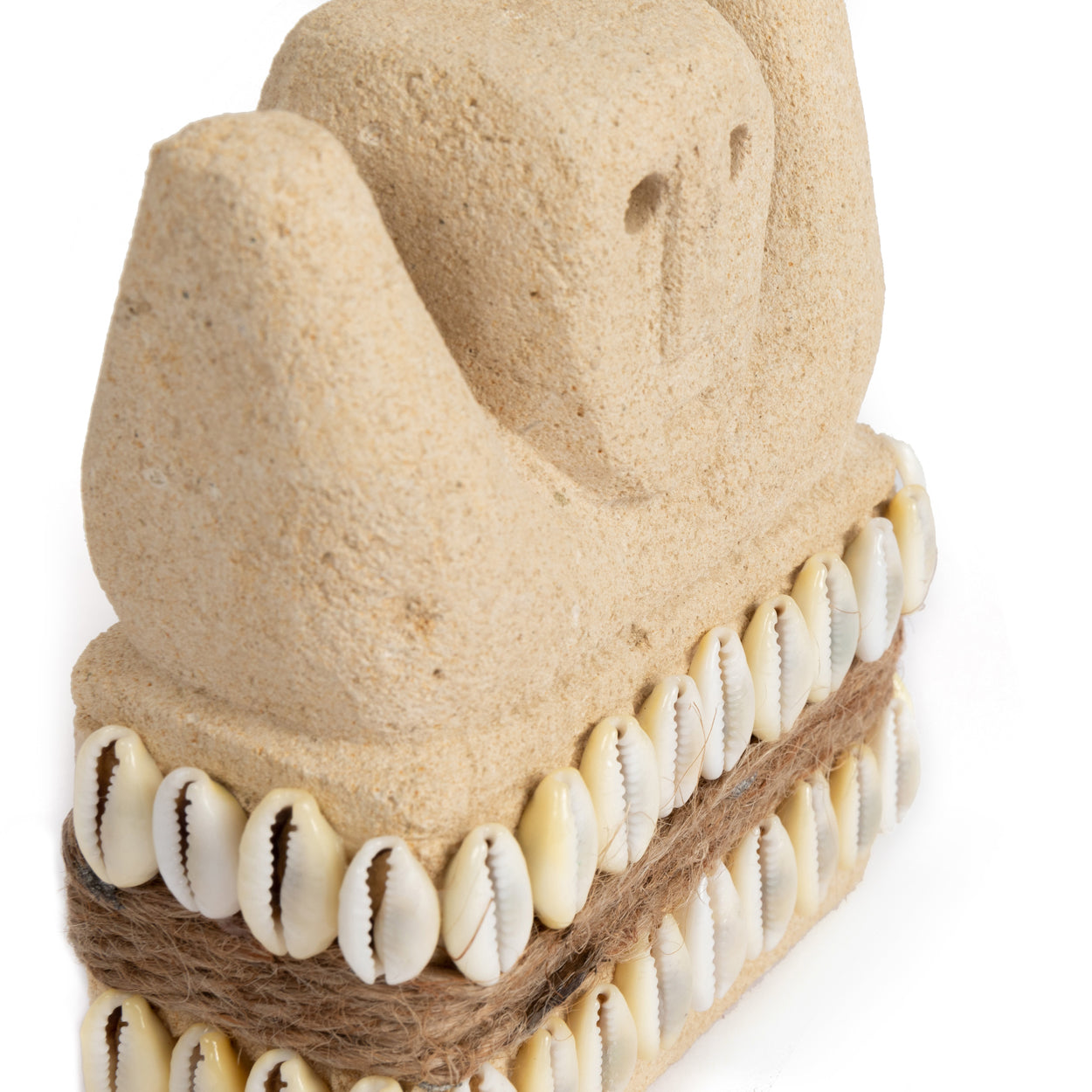 Beeld #28 -S van onze Sumba Stone-collectie. Deze eenvoudige stenen beelden zijn afkomstig van het Indonesische eiland Sumba en zijn met de hand uit zandsteen gehouwen door plaatselijke ambachtslieden. In de traditionele dorpen van Sumba worden beelden als deze geplaatst in en rond de ingang van de hut en bieden bescherming en genezing aan de bewoners binnen.