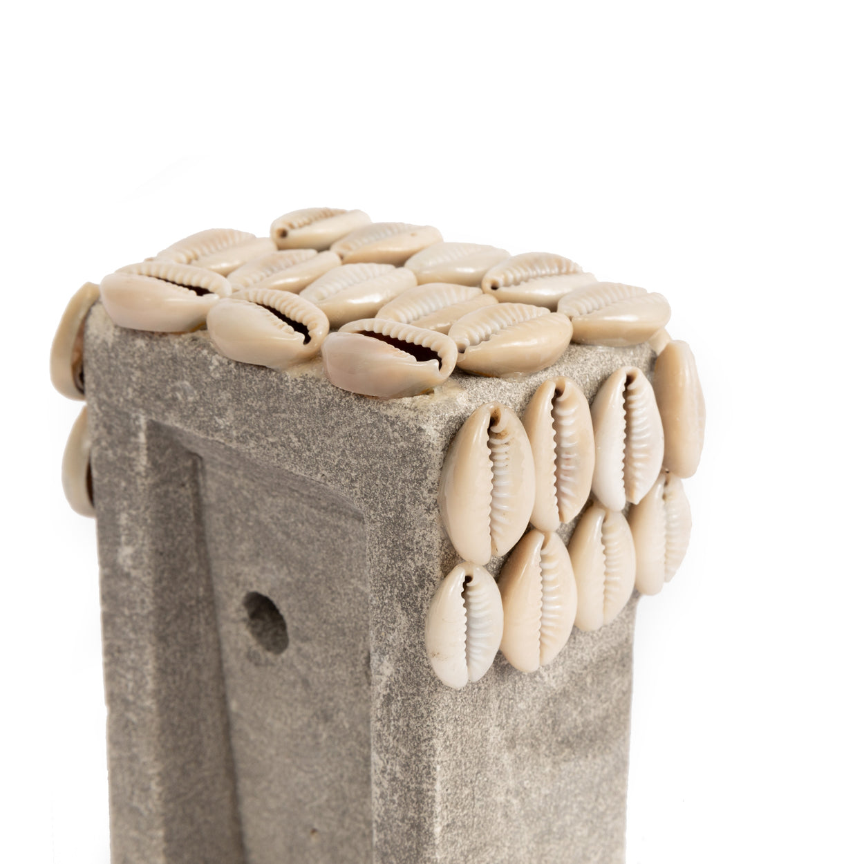 Beeld #29 van onze Sumba Stone-collectie. Deze eenvoudige stenen beelden zijn afkomstig van het Indonesische eiland Sumba en zijn met de hand uit zandsteen gehouwen door plaatselijke ambachtslieden. In de traditionele dorpen van Sumba worden beelden als deze geplaatst in en rond de ingang van de hut en bieden bescherming en genezing aan de bewoners binnen.