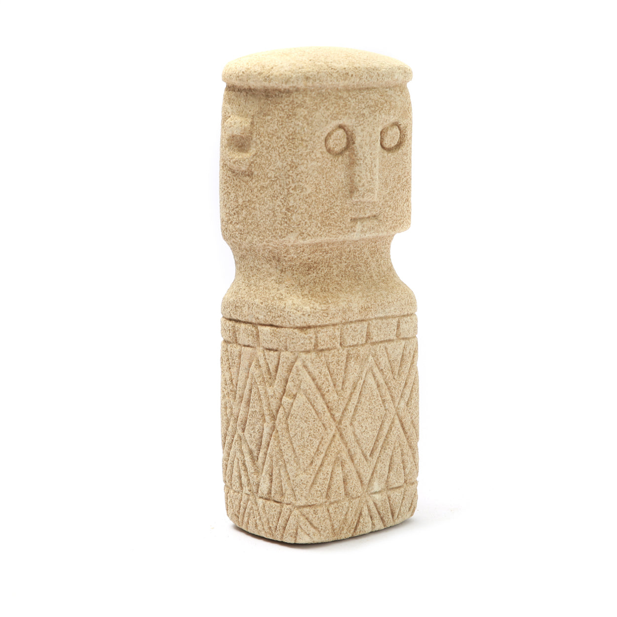 Beeld #03 van onze Sumba Stone-collectie. Deze eenvoudige stenen beelden zijn afkomstig van het Indonesische eiland Sumba en zijn met de hand uit zandsteen gehouwen door plaatselijke ambachtslieden. In de traditionele dorpen van Sumba worden beelden als deze geplaatst in en rond de ingang van de hut en bieden bescherming en genezing aan de bewoners binnen.