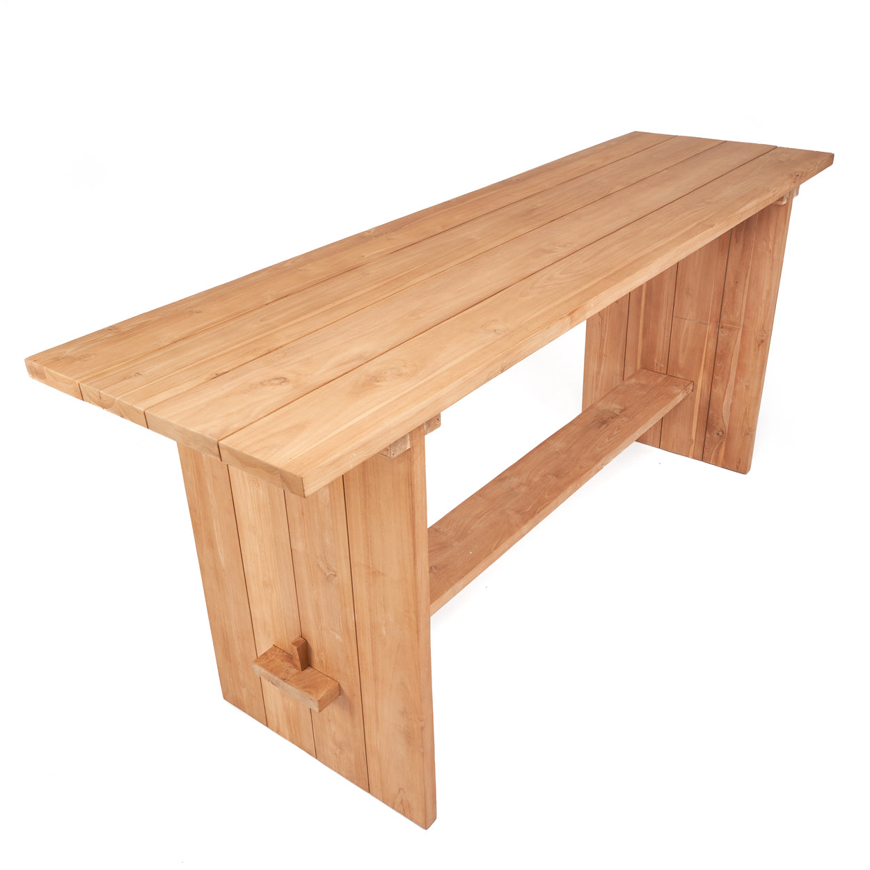 Ontdek de charme van duurzaamheid met onze Tabanan Bar Table, gemaakt van gerecycleerd teakhout. Ontworpen voor het buitenleven, maken zijn duurzaamheid en weerbestendige kwaliteiten hem perfect voor elke bijeenkomst. Omarm rustieke elegantie en milieubewustzijn in één strak ontwerp.