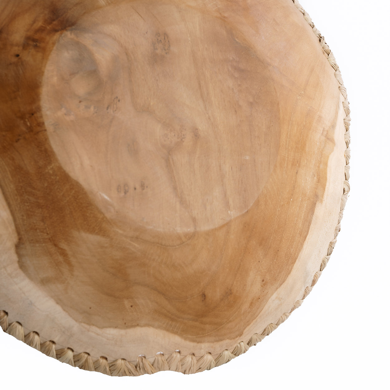 Je hoeft geen stylist te zijn om het eten er geweldig uit te laten zien met deze biologische schaal van teakhout en leer. Geef uw tafelschikking een natuurlijke uitstraling en maak indruk op uw gasten met dit unieke item. Elk stuk is volledig uniek. Perfect om uw fruit, brood of iets anders op uw tafel te bewaren.
