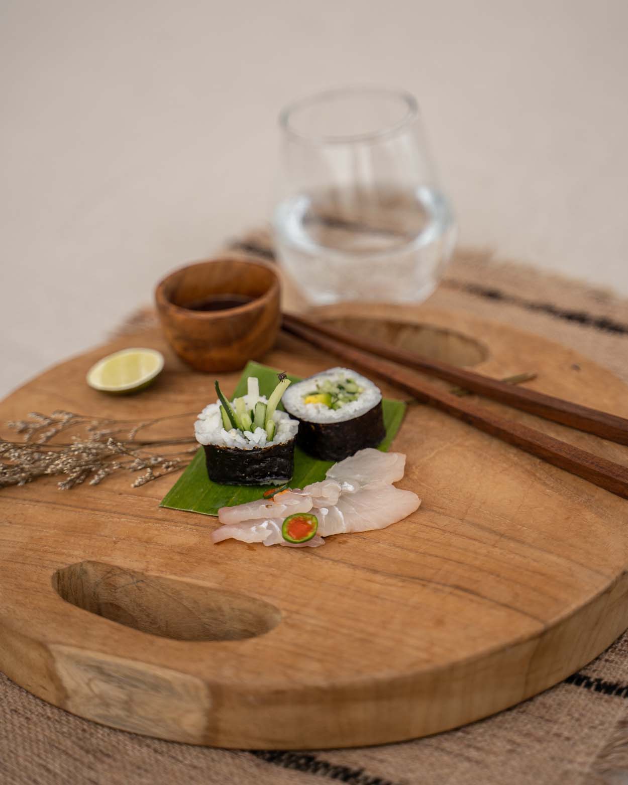 Deze massieve teakhouten snijplank kan ook gebruikt worden als dienblad. Het ziet er geweldig uit op elk aanrecht!