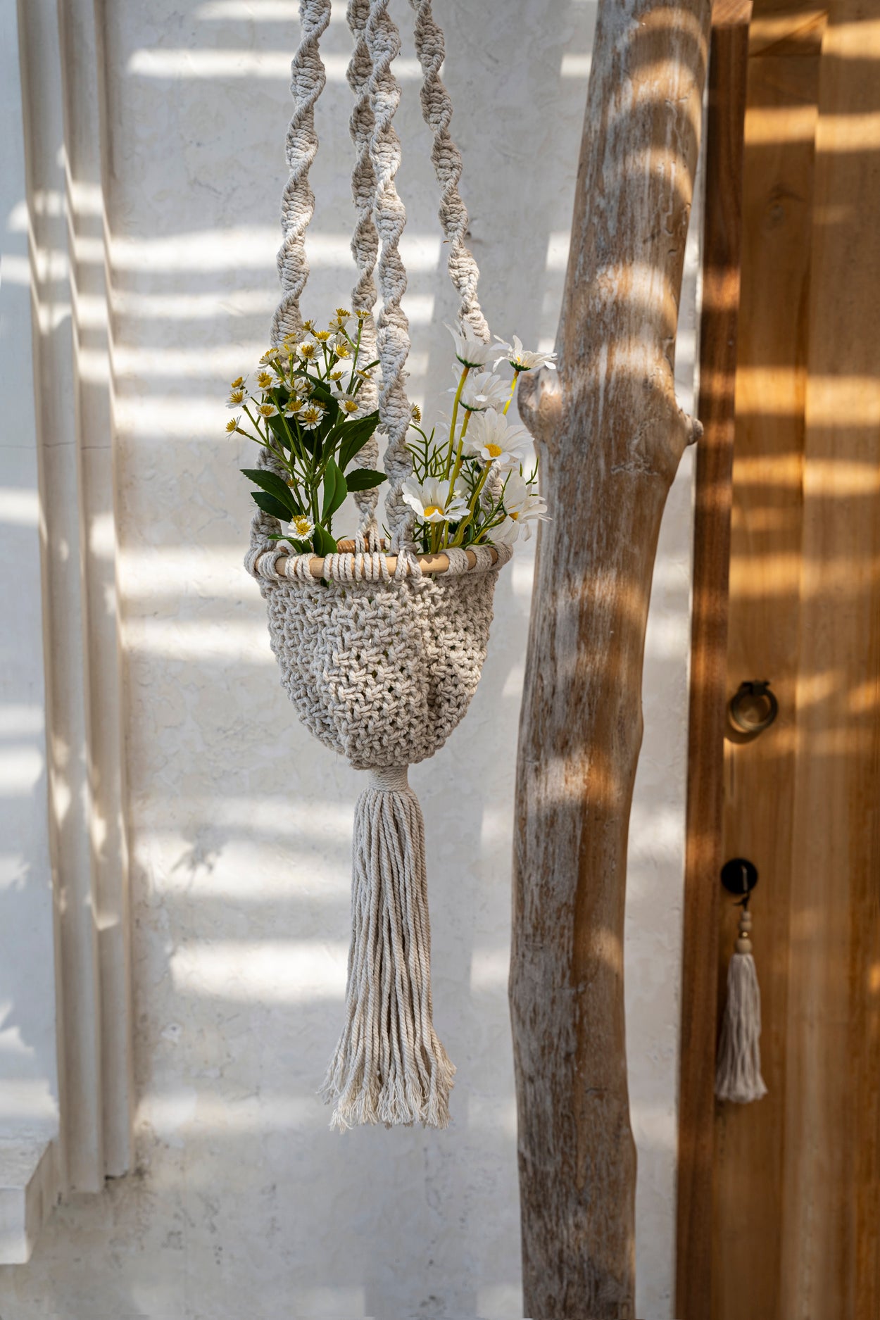 Als het twisted is, moet het wel goed zijn! Hanging plants instantly makes them an eye catcher in any room. This handmade macramé basket made of cotton is the perfect plant holder that makes a fabulous home for your indoor plants. Add a decorative touch to your interior space or covered outside room with your favourite natural greenery or faux plant.